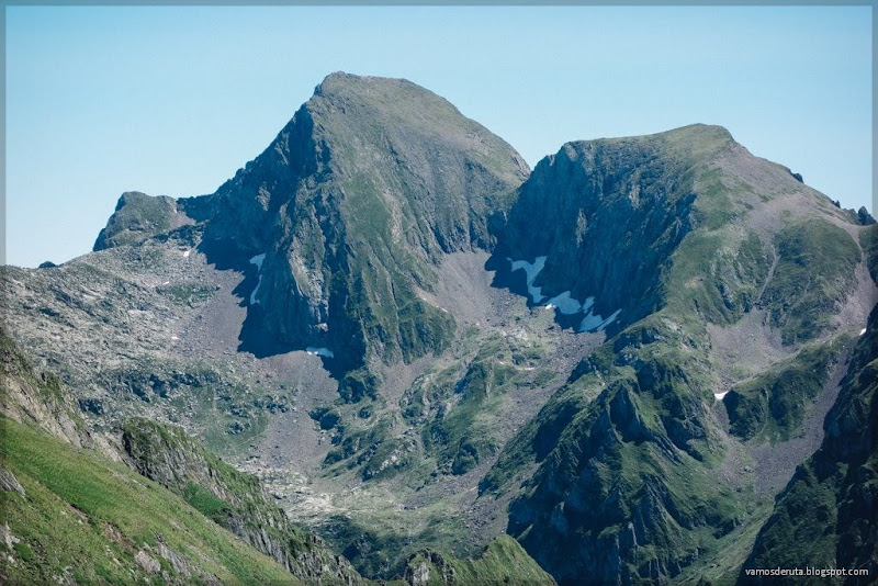 El sendero es bueno, aunque aún nos queda un paso que tenemos que negociar sin dificultad. Sólo tener precaución de pasarlo por la parte más cercana a la cresta posible, la caída hacia la parte francesa tiene mucho patio. A partir de este punto buena y trillada senda que seguimos sin más problemas.
